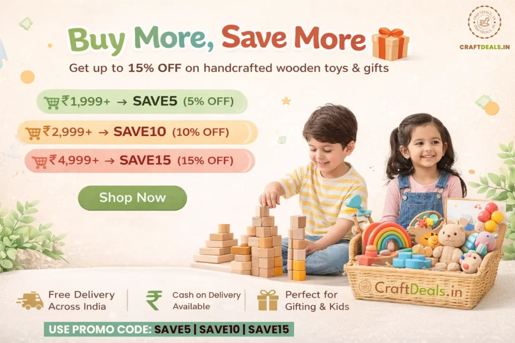 Explore the full collection today at CraftDeals.in Channapatna Toys and give your child a toy that’s as meaningful as it is fun.
