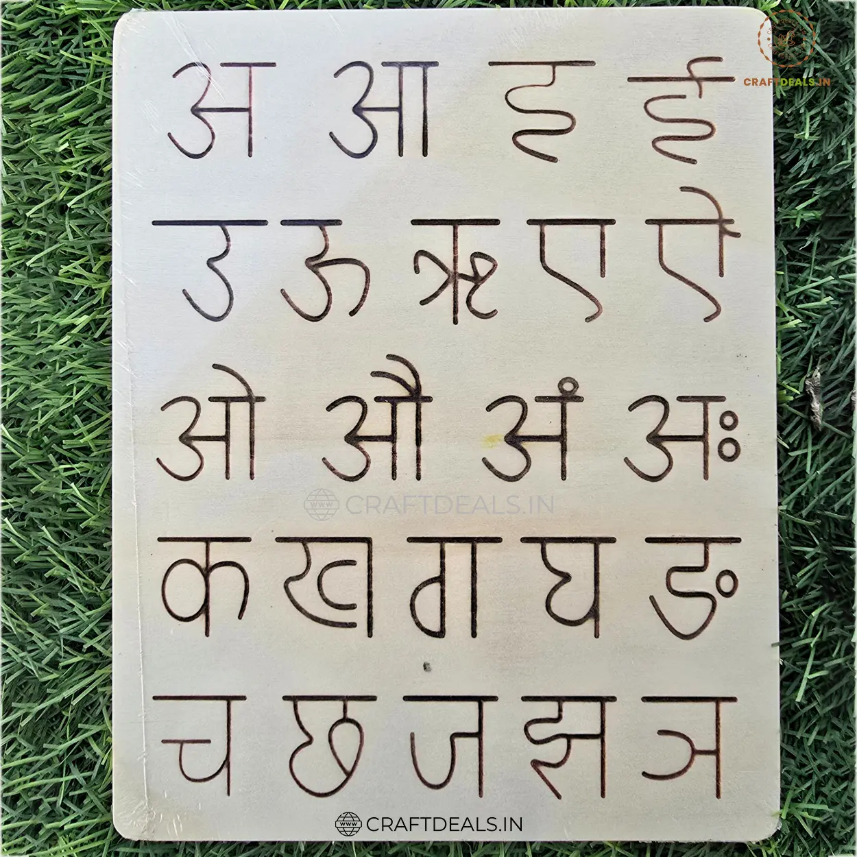 Wooden Hindi tracing board for kids (3+) to learn Devanagari alphabets. Montessori-inspired design builds pre-writing skills, pencil control, and fine motor development through hands-on, eco-friendly learning.