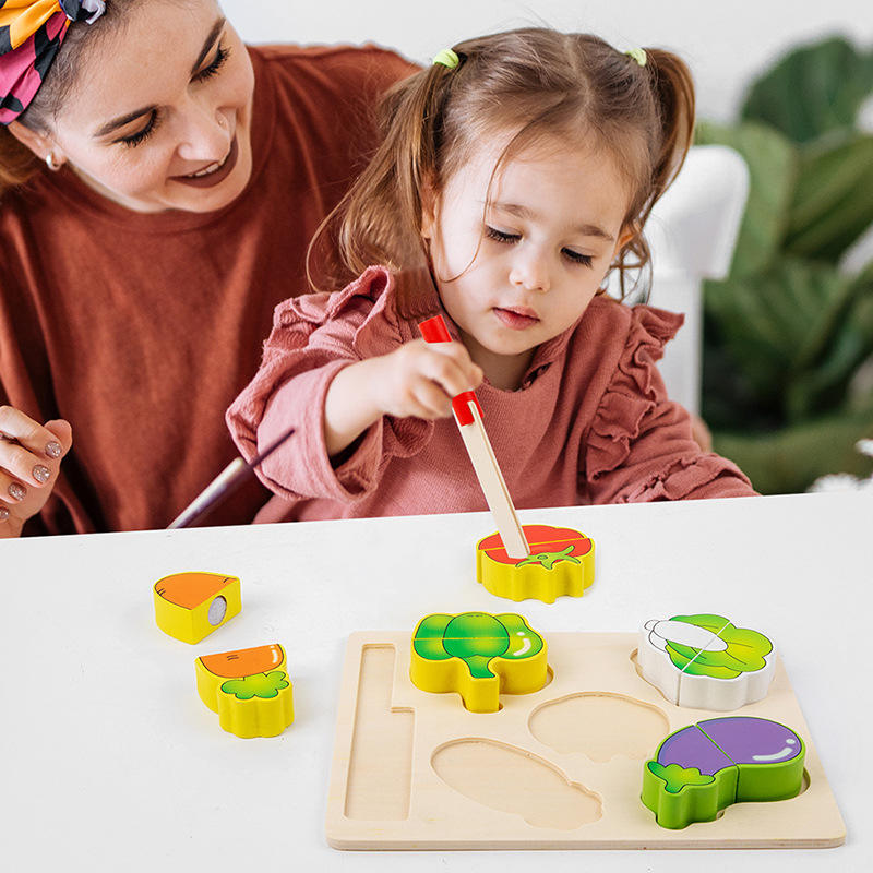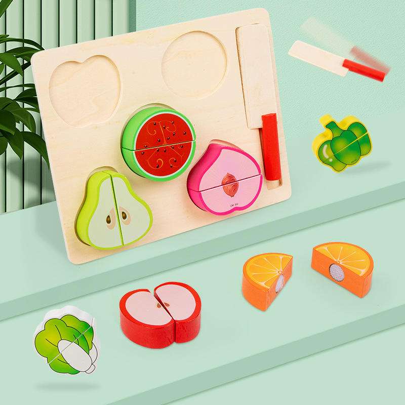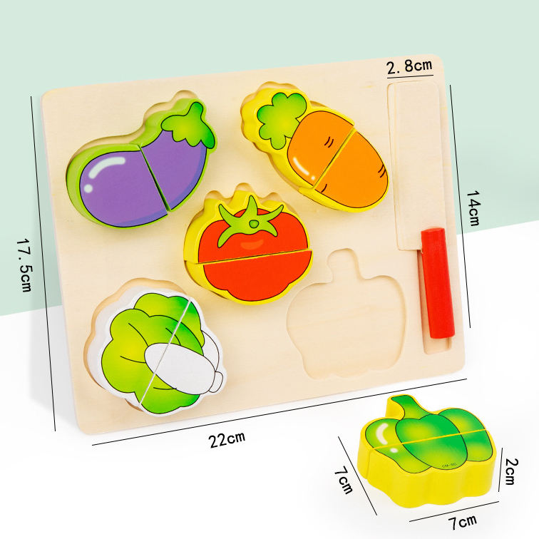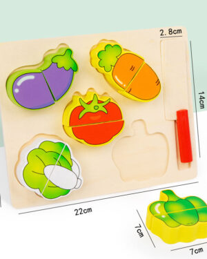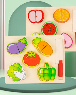 Wooden fruit or vegetable cutting puzzle toy for kids. Montessori 3D board improves fine motor skills, coordination & pretend play through safe wooden fun.